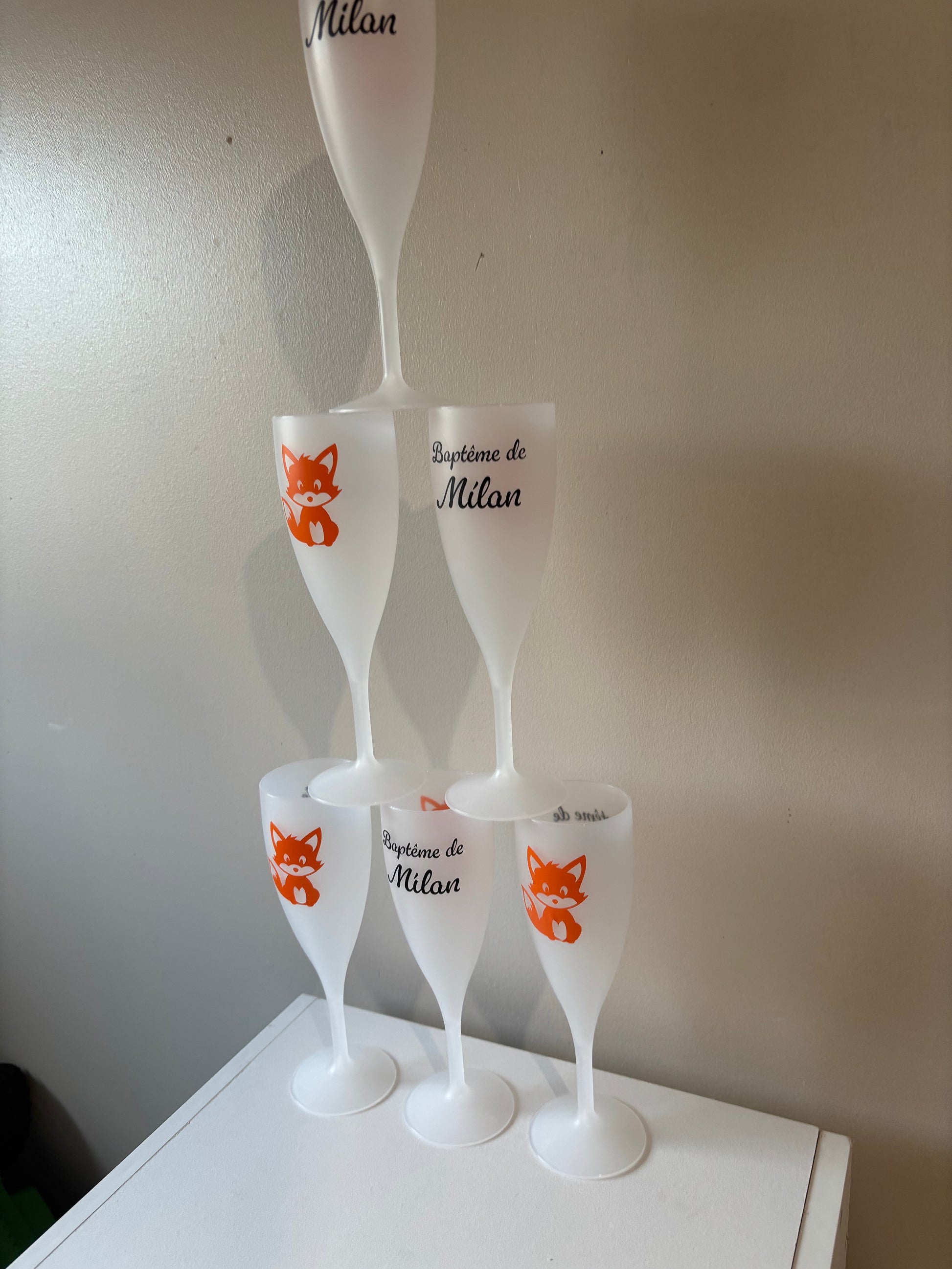 Offrez à vos invités un souvenir élégant et personnalisé avec nos flûtes en plastique réutilisables ! Idéales pour les baptêmes, mariages, anniversaires ou tout autre moment précieux, ces flûtes sont décorées avec soin, à l’image de votre événement.