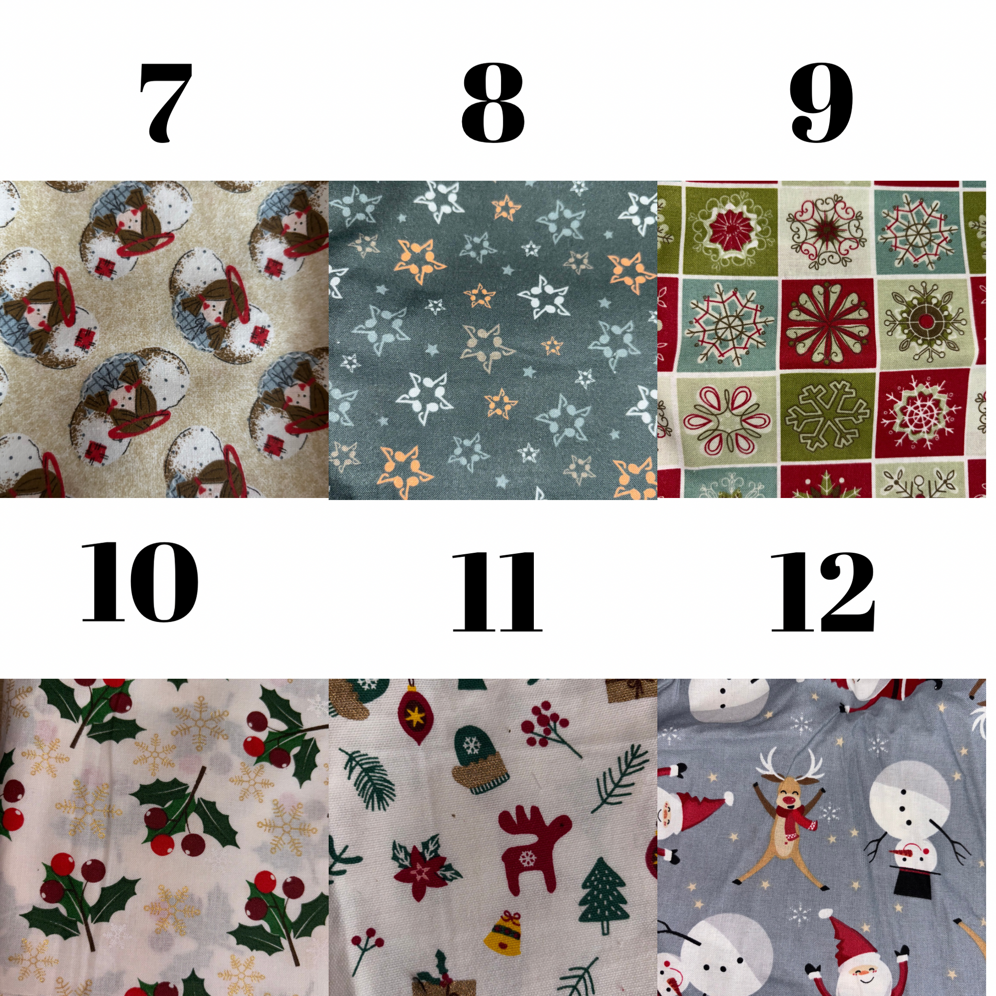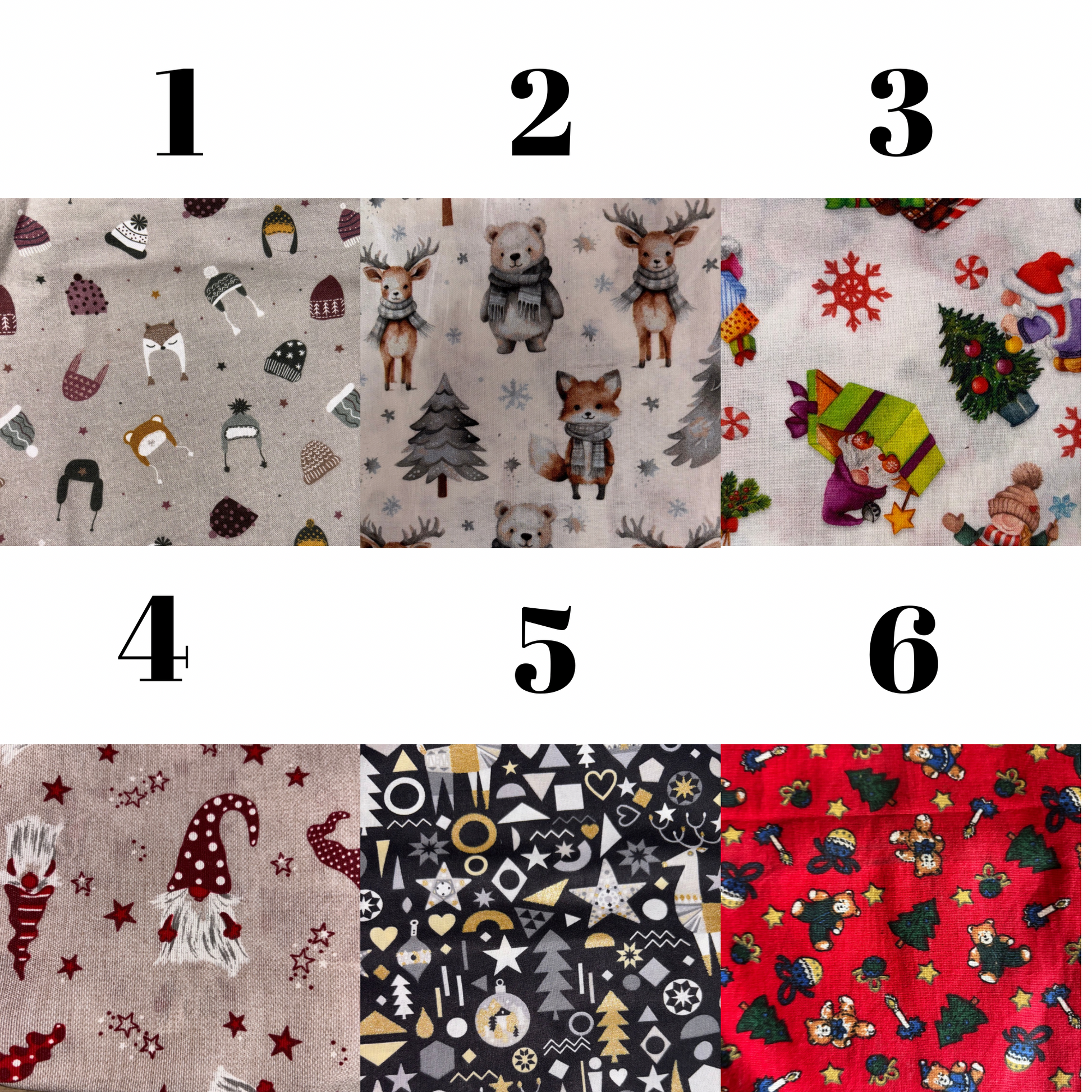 🎄 Choix des tissus : plusieurs motifs festifs pour s’accorder à votre décoration de Noël.